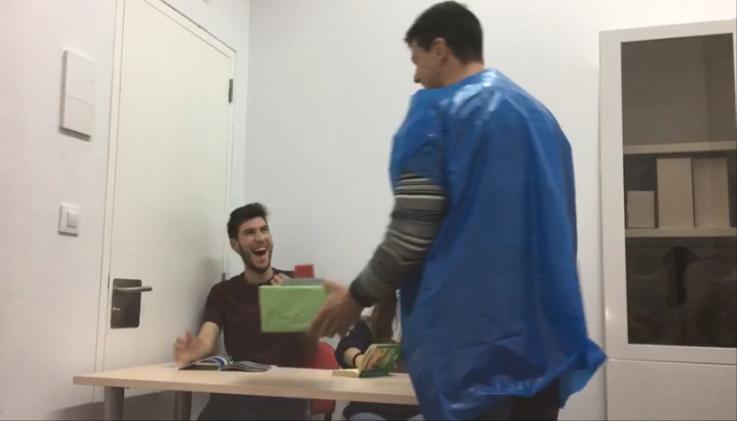 La tercera sesión de creación del vídeo ha sido hasta ahora la más divertida, pues comenzamos los ensayos de la grabación siguiendo el guion creado anteriormente. Lo hemos pasado en grande y no paramos de reír, pero todavía queda mucho por hacer. En la próxima sesión más...